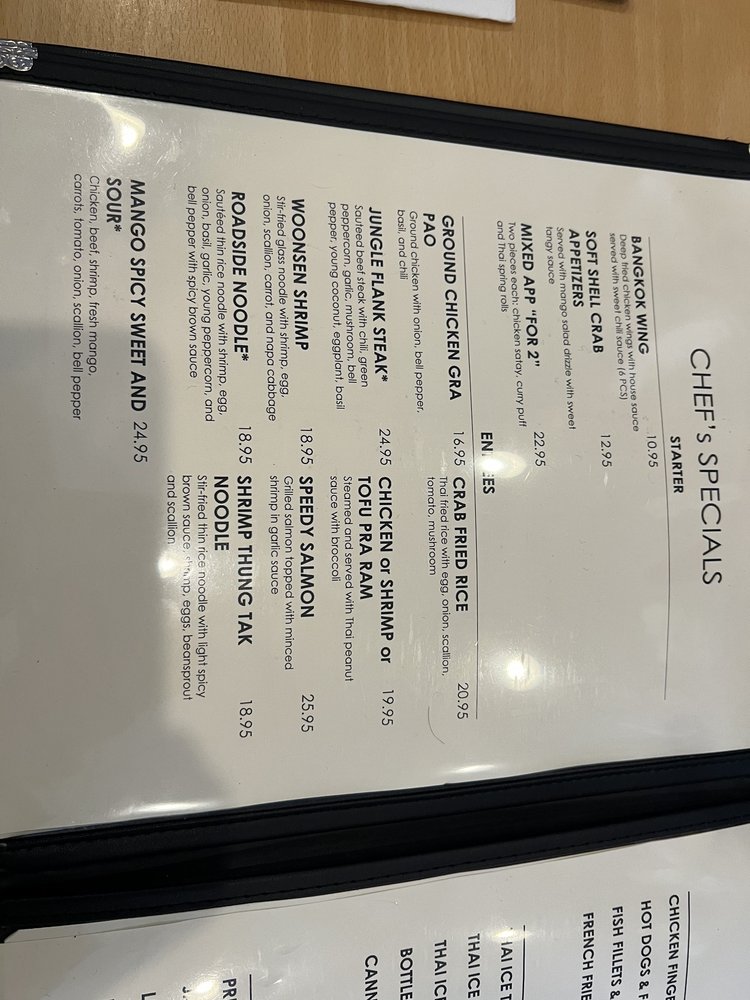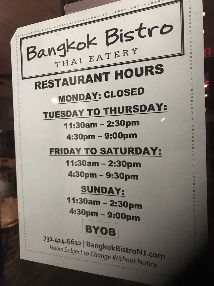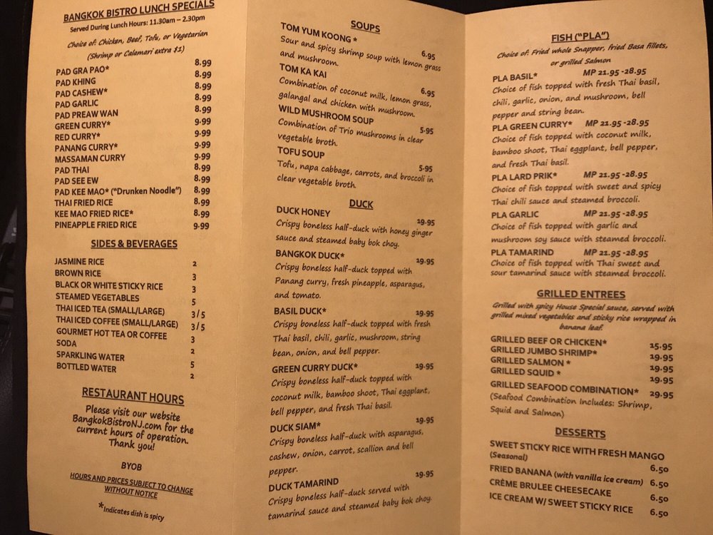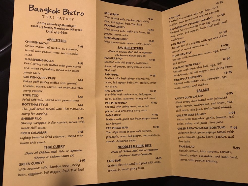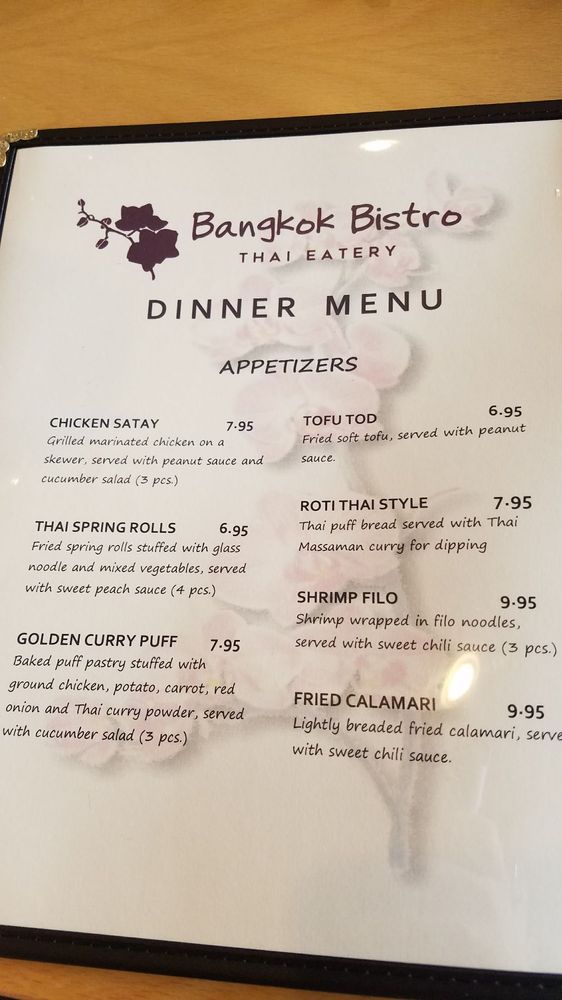 Introducing the menu at Bangkok Bistro Thai Eatery, located in Manalapan, NJ, where the culinary experience takes you on a journey through authentic Thai flavors. From Chef Specials like Gra Pao Gai Kai Dao and Speedy Salmon to mouthwatering appetizers like Thai Spring Rolls and Fried Tofu, every dish is bursting with flavor. The customer reviews showcase the love for favorites like Pad Thai and Red Curry, emphasizing the balance of sweetness, tanginess, and spice in each bite. The cozy ambiance and attentive service enhance the dining experience, making Bangkok Bistro a must-visit for Thai cuisine lovers. Whether you're craving traditional Tom Yum soup or exploring new flavors like Ducky Pineapple Fried Rice, this hidden gem offers a delightful culinary adventure that will keep you coming back for more.